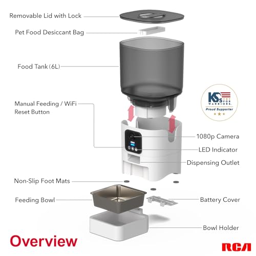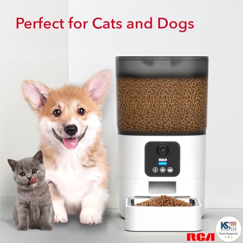 RCA Cat & Dog Pet Feeder with HD 1080p Camera, Real-Time Two-Way Audio, Monitoring, Motion Detection, Night Vision, Compatible with Google Assistant, Alexa – 6L Capacity, Dishwasher Safe Bowls