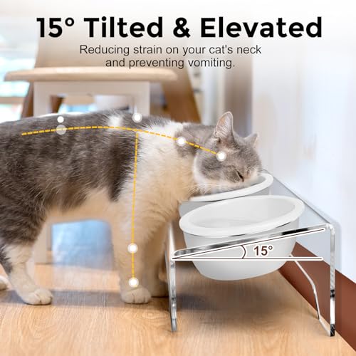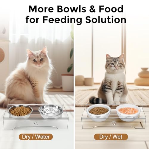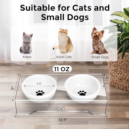 Stable and Anti-Skid: The acrylic stand of the elevated cat food bowl ensures stability and prevents sliding or tipping during mealtime, providing a secure feeding experience for your small size dog,cat.