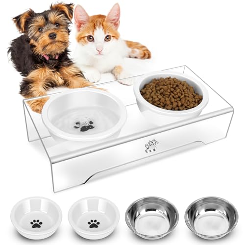 Tilted Dog Bowls for Small Dogs with Stand,Ceramic Dog Food and Water Bowl Acrylic Stand,4 Inch Slanted Cat Bowls for Indoor Cats Small Dog Kitten Puppy (4 Pack)