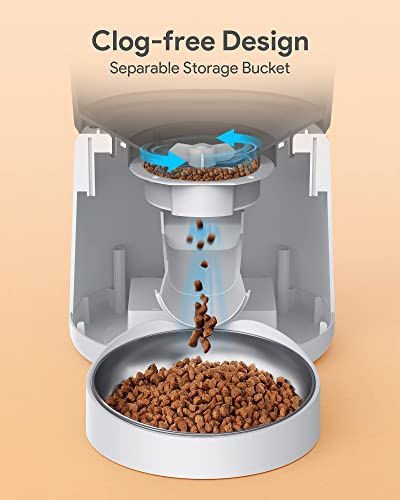 Upgraded Automatic Cat Feeder, KATALIC Clog-free 4L Cat Food Dispenser Sliding Lock Lid Storage Timed Feeder for Cat and Dogs with Voice Recorder, Programmable Meal & Portion