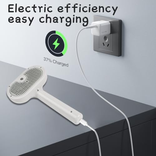 Electric Pet Spray Brush: USB Rechargeable Self-Cleaning Dog & Cat Hair Deshedding Tool with Mist for Tangles and Shedding – Suitable for Long & Short Fur Animals (White)