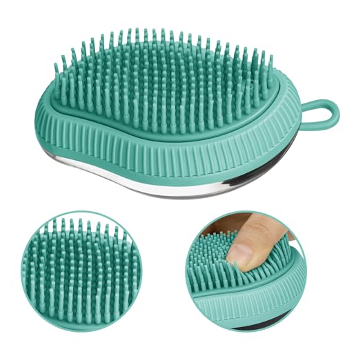 Pet Grooming Bath Massage Brush with Soap and Shampoo Dispenser Soft Silicone Bristle for Long Short Haired Dogs Cats(BLUE)