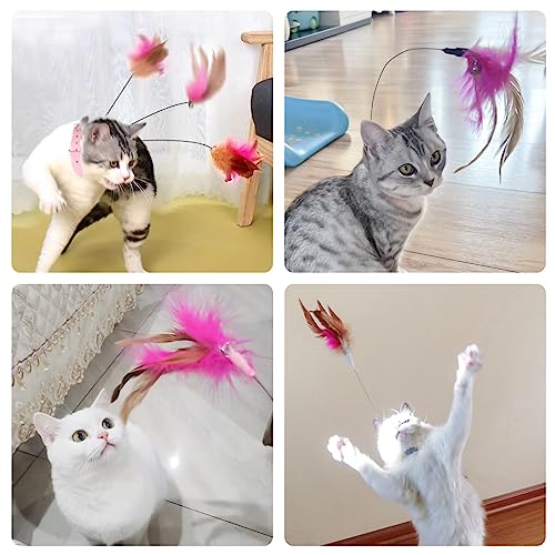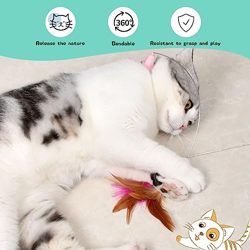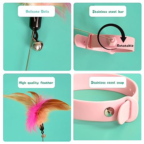 2Pcs Cat Collar Toy, Cat Feather Collar Toys,Cat Teasing Wand Silicone Collar Hands Free Toy with Bell and Feathers for Cats