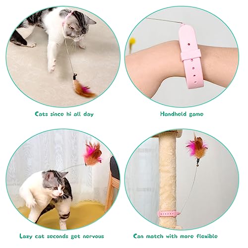 【MULTIPLE WAYS TO PLAY】This cat toy feather can be put on the cat’s neck, tied to a table leg/cat climbing tree, or tied to your hand/foot. If you have more than 1 cat, you can put this toy on one of them and watch how they’re having fun together and bonding through play.It can be easily attached to your hand or leg, turning you into a playful teaser for your furry friend.