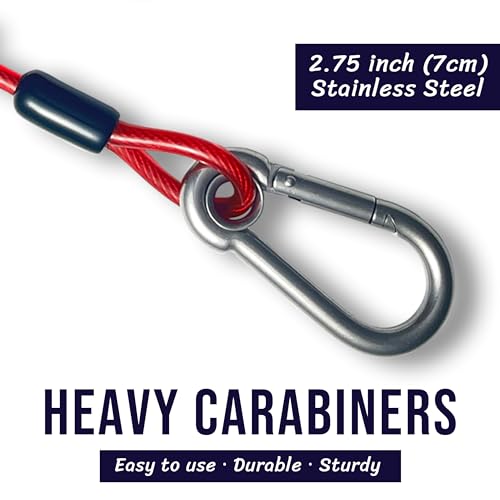 Best Dog Cable Available – Made with woven steel wire covered in chew-resistant PVC material to ensure your pet’s safety. Features a heavy-duty carabiner on one end and a 360-degree swivel clip on the other end for tangle-free and easy use.