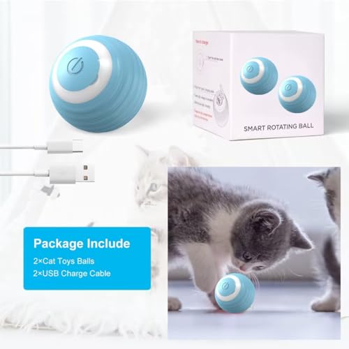 Interactive Cat Toy Ball-2pcs Automatic Cat Toy, Smart Ball cat Toy for Indoor Cat Kitten,cat Toys Gift for Your Kitty (Blue)