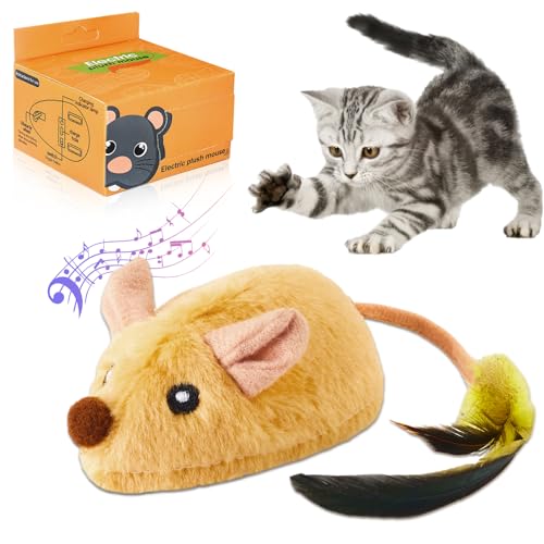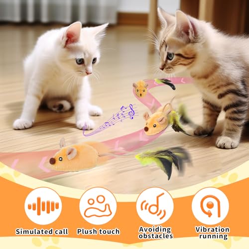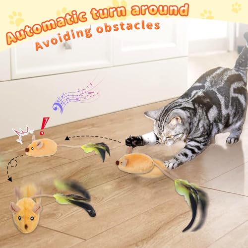 Interactive Cat Toys for Indoor – Automatic Moving Mouse Cat Toy Rechargeable LED Cat Mouse Toys with Feather Tails Automatic Squeaky Cat Toys for Kitten Indoor/Outdoor Exercise (Yellow)