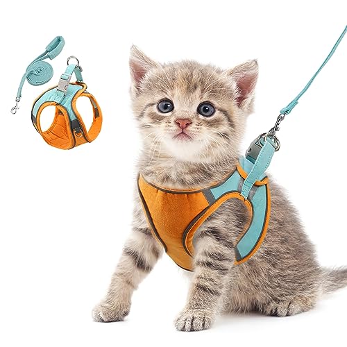 ORIA Kitten Harness and Leash Set, Escape Proof Dog and Cat Harness, Adjustable No Pull Kitten Vest Harness with Reflective Strips, for Outdoor Training, Walking, Orange, XXS
