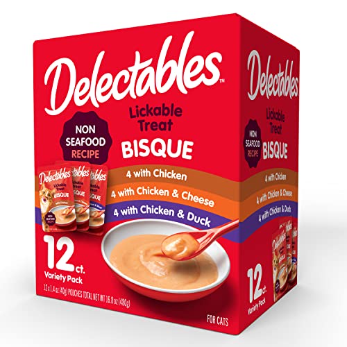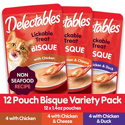 Delectables Bisque Non-Seafood Lickable Wet Cat Treats, Variety Pack, 12 Count (Pack of 1)