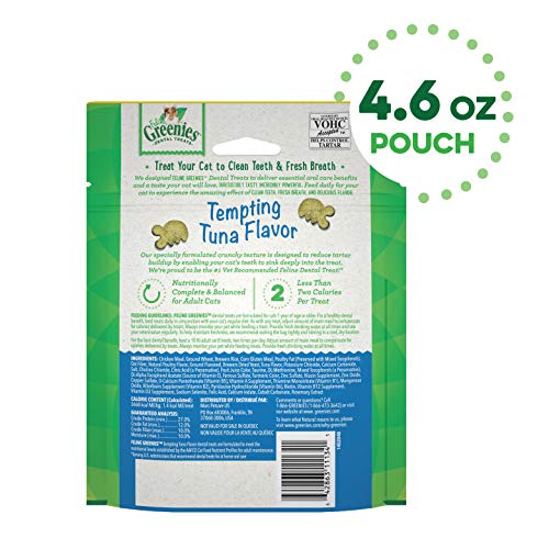 Greenies Feline Adult Natural Dental Care Cat Treats, Tempting Tuna Flavor, 4.6 oz. Pouch