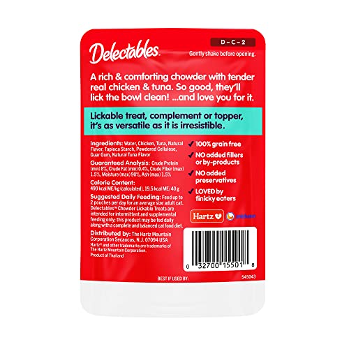 Hartz Delectables Chowder Lickable Wet Cat Treats for Kitten, Adult & Senior Cats, Chicken & Tuna, 1.4 Ounce (Pack of 12)