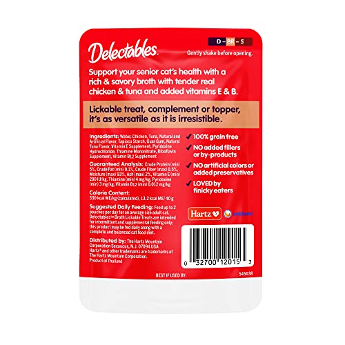 Hartz Delectables Savory Broths Senior 10+ Chicken & Tuna Lickable Cat Treat, 12 Pack