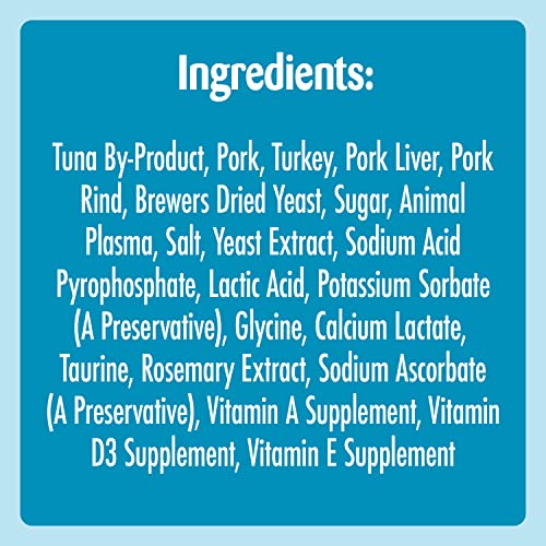 We’re not kitten around… cats can’t resist the delicious taste of TEMPTATIONS Meaty Bites Soft and Savory Cat Treats, made with real meat and no artificial flavors or colors. Just open up this soft cat treats pouch and your adult cat will be ready to pounce. Each cat treat has less than 2 calories, so they’re a tasty complement to a complete and balanced diet that contains the nutrients your furry four-legged friend needs to stay healthy… Try using these tuna flavor cat treats to reward purr-fect behavior, as an extra-special cat food topper, or as snacks for any time. Plus, each meaty treat is made with 34% protein, so you’re also satisfying those natural feline instincts every time you pop open the bag. And don’t worry, pet parents… we designed a convenient stay-fresh, resealable pouch, so wandering paws can’t fish for cat treats when you’re not looking. * Based on Nielsen 2020 sales data