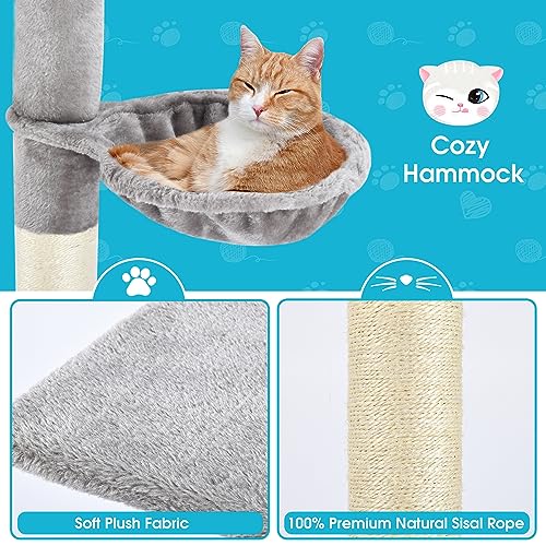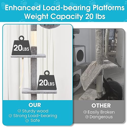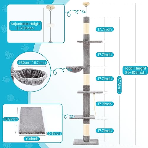 5-Tier Cat Tree, 89-109 Inch Adjustable Height, Sisal Scratching Post, Provides Cats Vertical Enrichment, Exercise, Privacy, and Mental Stimulation
