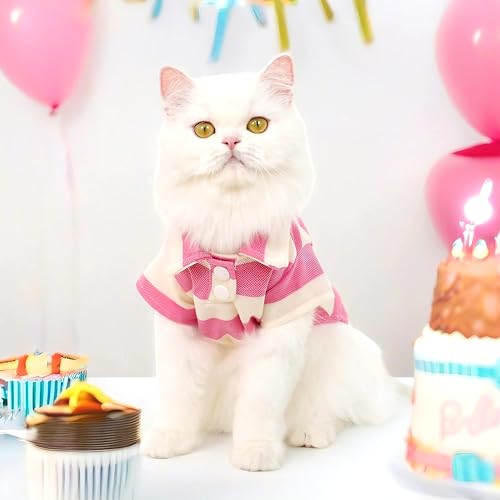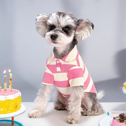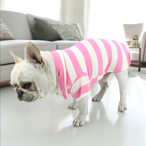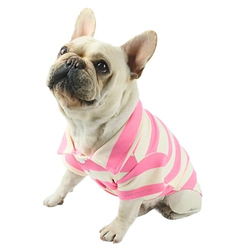 French Bulldog Clothes, Striped Polo Shirt Dog Clothes Girl Boy Frenchie Clothes Shirts for Small Medium Dogs Cats French Bulldog Boston Terrier Pug American British Shorthair (Pink,XL)