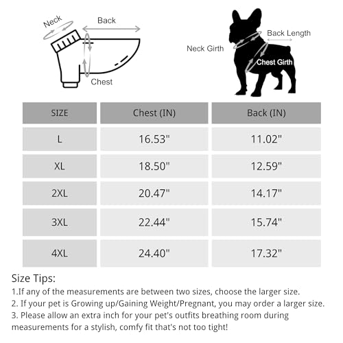 【Size Tips】This pet clothes is designed to cater to both dogs and cats, featuring five different sizes to accommodate various body shapes. Prior to purchase, we recommend measuring your pet’s three dimensions and choosing the suitable size according to the provided size chart.f any of the measurements are between two sizes, choose the larger size. Please allow an extra inch for your pet’s outfits breathing room during measurements for a stylish, comfy fit.