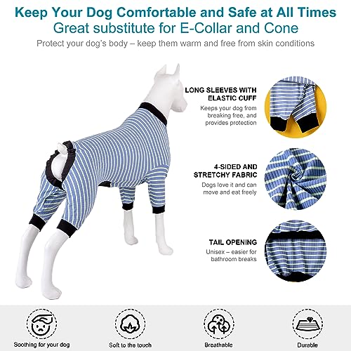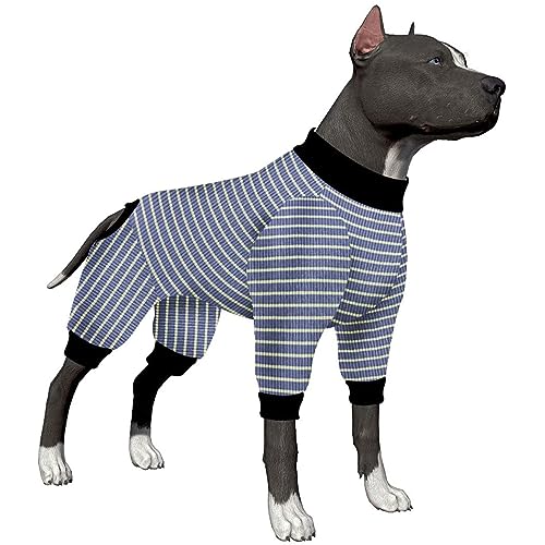 LovinPet Big Dogs PJS Apparel – Blue and Yellow Stripe Dog Shirt, 4-Legged Design, Full Body Coverage, for Big Dogs, Large Breed Dog PJ’s,2XL