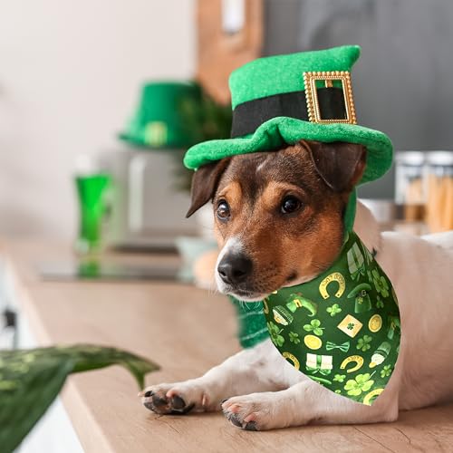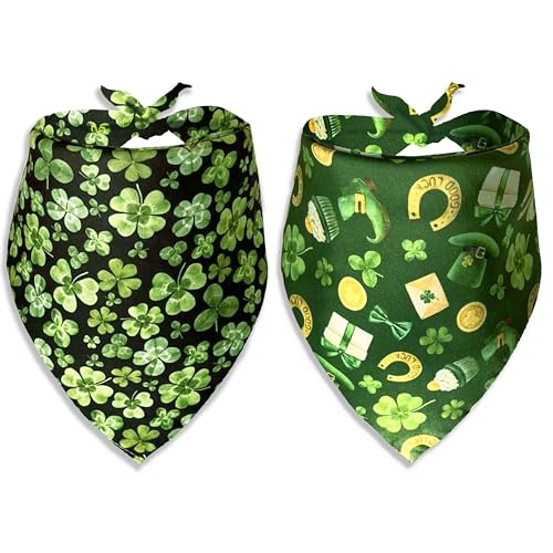 St. Patrick Dog Cat Bandana, Holiday 2 Pack Bandana Irish Rainbow Shamrock Scarfs for Small Medium Large Dogs Cats Pet Puppies