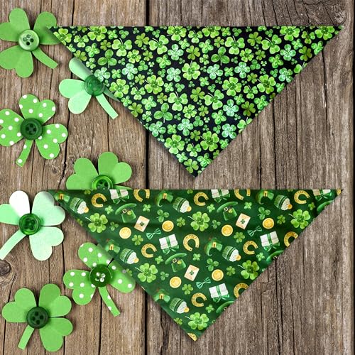 🎁【Value packaging】One package has two bandanas(Shamrock+Luckyclover). With our 2-pack value package, you get double the fun and double the luck! Dress up your pup in different styles or share the joy with a fellow canine friend – there’s plenty of luck to go around.