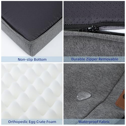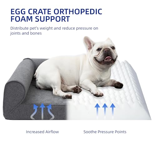 Orthopedic Dog Bed for Large Dogs Egg-Crate Foam Waterproof L Pet Bed with Sides Non-Slip Bottom Big Dog Couch Bed with Washable Removable Cover,Grey 36×27