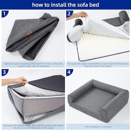 🐶CARE INSTRUCTION: Our washable dog bed with removable cover has zipper closure and can be easily cleaned. Just get the foam off and it can be machine washed directly with the sides. Please note that the inner foam is not washable. After receiving it, leave it for 24-48h for rebound.