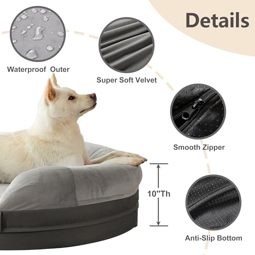 Orthopedic Dog Bed Large Breed with Memory Foam, 10″ Th Dog Beds for Large Sized Dog, Split into 2 Dog Beds, Dog Couch Bed with Washable Removable Cover, Anti-Slip Bottom (45″ Lx33 Wx10 Th)