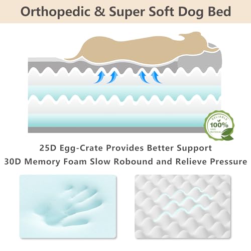 【Washable & Removable Cover of Dog Beds Washable】 Easy-to-clean. All sponges of Bepatio waterproof dog bed can be easily removed. The entire cover can be removed, cleaning is simple and easy. There is an anti-slip mat at the bottom. The surface and bottom of Bepatio dog beds for large dogs are up to 70% waterproof. Hassle-free assembly, no tools required.