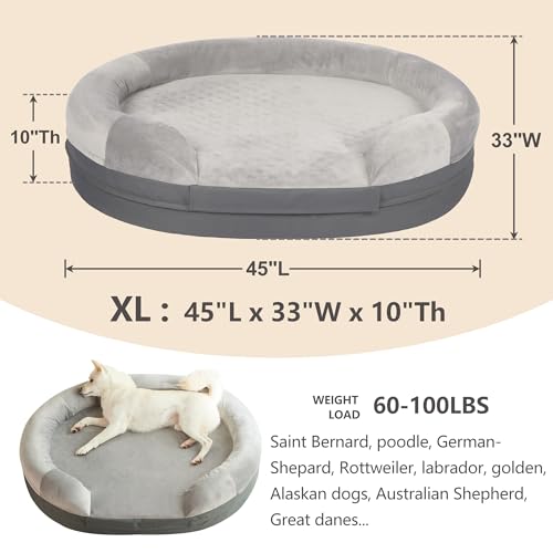 【45″L x 33″W x 10″Th Orthopedic Dog Bed】XL dog bed is suitable for Saint Bernard/poodle/German Shepard/Rottweiler/labrador/golden/Alaskan dogs/Australian Shepherd/Great danes…