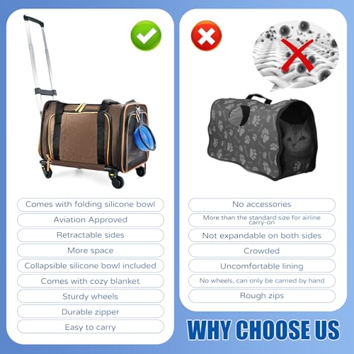Airline Approved Pet Carrier with Extra Room -Expandable Premium Pet Carrier on Wheels – Double-Sided Rolling Carrier for Dogs and Cats – Soft Lined and Expandable!
