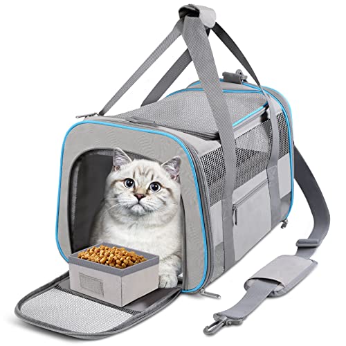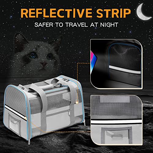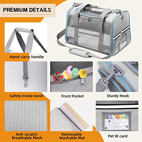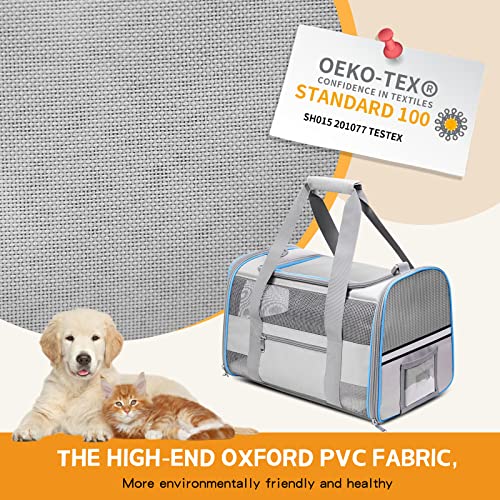Cat Carrier Dog Carrier Pet Carrier Airline Approved for Small Dogs Medium Cats Puppies Under 15 Lbs, Collapsible Soft Sided Dog Travel Carriers for Puppy and Kitten-Light Grey