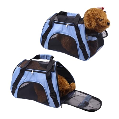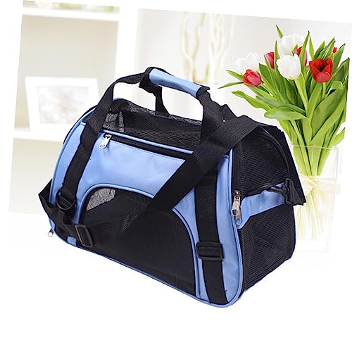 1 x Portable Cat Dog Pet Carrier Backpack Mesh Puppy Pack Outdoor Travel Handbag with Safety Zippers Size S (Blue)