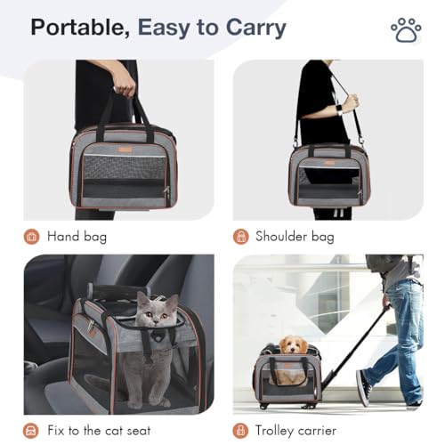 Easy to Transport: The built-in telescopic trolley handle and easy swivel wheels allow you to carry the pet everywhere effortlessly. And the pet carrier easily folds flat for convenient storage when not in use.