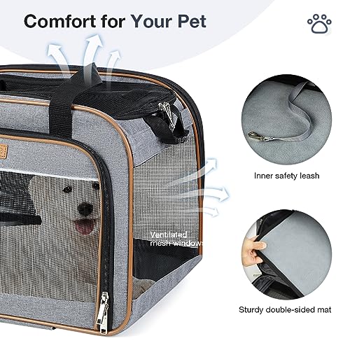 Breathable and Easy Access: Four-sided mesh windows of the carrier provide optimal airflow and visibility for your furry friend. Both the front door and top entrance make getting your pet in and out of the carrier a breeze.