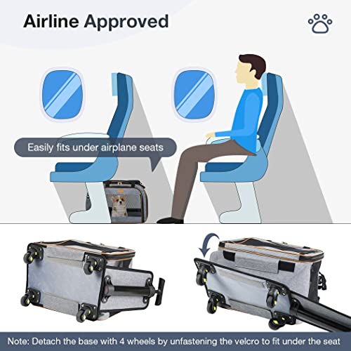 Airline Approved and Spacious: Measuring 18.1”Lx11.8”Wx12.6″H (without wheels), this rolling pet carrier is designed to meet TSA standards and fits under airplane seats when the wheels are removed. Suitable for small/medium-sized pets up to 20 lbs (9kg).