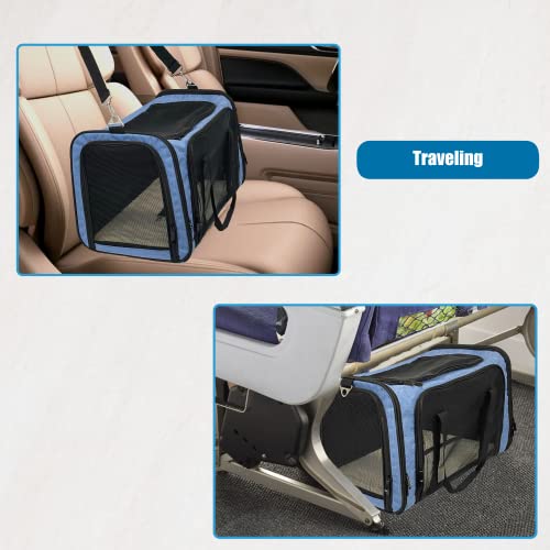 Pet Dog Cat Puppy Carrier for Small Medium 15LBs, Large 25LBs, Soft-Sided Collapsible Foldable Travel Carrier with Removable and Washable Cozy Mat – Black Grey Blue Pink (Large, Blue)