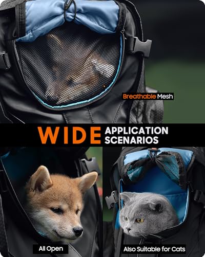 【Optimal Ventilation】 – The sides and top of the dog/cat carrier backpack are designed with ventilated mesh holes, ensuring air circulation. This design allows your pets to stay in the backpack while enjoying the scenery outside simultaneously.
