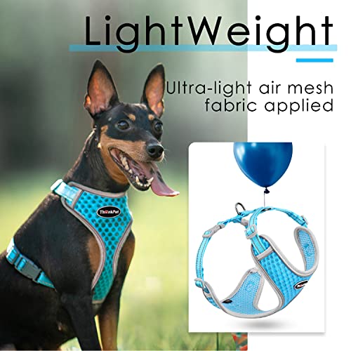 ThinkPet Reflective Breathable Soft Air Mesh No Pull Puppy Choke Free Over Head Vest Harness for Puppy Small Medium Dogs and Cats Light Blue Medium