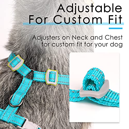 EASY TO PUT ON AND OFF: The M size medium dog harness first adjusts the sliding straps on the neck and then fits it into the pet’s head. Then use two quick release buckles to buckle up the chest, making it easy and convenient to put on and off.