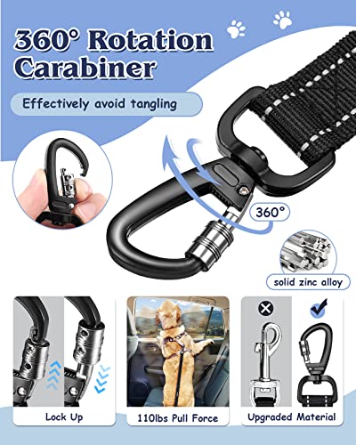 EASILY ADJUSTABLE – The length of the strap can be easily adjusted from 27.5 to 38.1 inches (70-97cm) in length to fit any size and breed of dogs. 360° tangle-free carabiner allows your pet to sit, stand or lie down comfortably in the car.