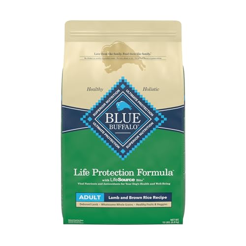 Formulated for the health and well-being of adult dogs, BLUE Life Protection Formula Lamb and Brown Rice dry dog food is made with the finest natural ingredients enhanced with vitamins, minerals, and other nutrients. It’s a high-quality, balanced recipe you can both feel great about. Designed to help your dog thrive, this formula starts with real lamb and contains no chicken (or poultry) by-product meals, no corn, wheat, or soy, and no artificial flavors or preservatives. Like all BLUE dry foods, BLUE Life Protection Formula includes exclusive, antioxidant-rich LifeSource Bits to support a healthy immune system in your adult dog. Give your dog the balanced nutrition of BLUE Life Protection Formula today.BLUE Life Protection Formula is brought to you by Blue Buffalo, the leader in natural pet food. Blue Buffalo makes premium-quality pet foods featuring real meat, fruit, and vegetables. Love them like family. Feed them like family.