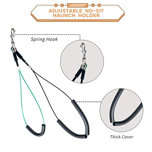 NO SIT HAUNCH HOLDER & LOOP NOOSE: No Sit Haunch Holder (21 inch and 19 inch) and dog restraint rope (18 inch) can safely and securely hold dog’s head and haunch on the grooming table, which helps keep your dog standing in comfort and control overly excitable pets from excessive moving. Make your dog fall in love with the great grooming time.