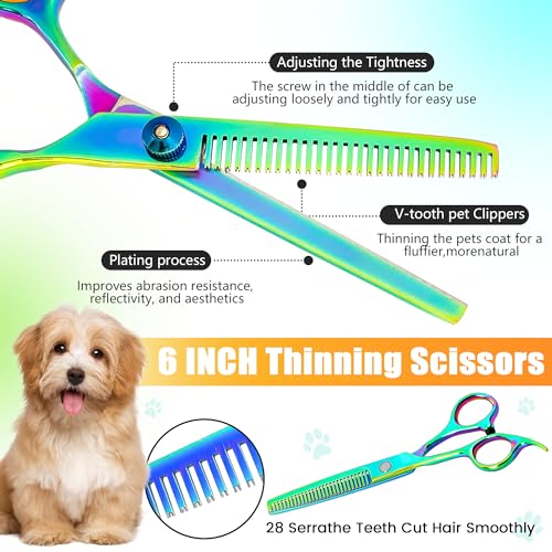 ADJUSTABLE AND QUIET: The dog grooming scissors kit is adjustable for tightness, making it convenient to use. Whether you are a professional pet groomer or a novice, you can easily use it to trim dogs, cats, and other pets.