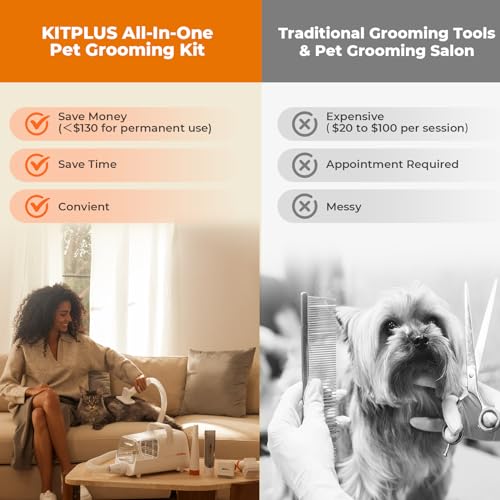Pet Grooming Vacuum Kit, Suction 99% Pet Hair, Professional Rechargeable Clippers with 5 Proven Grooming Tools for Dogs Cats and Other Animals