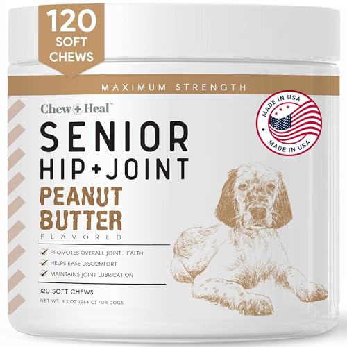 Glucosamine for Dogs Hip and Joint Supplement – 120 Soft Chews for Senior Dogs with Glucosamine, Chondroitin, MSM, and Omegas – for Mobility, Cartilage, and Joint Health – Peanut Butter Flavor