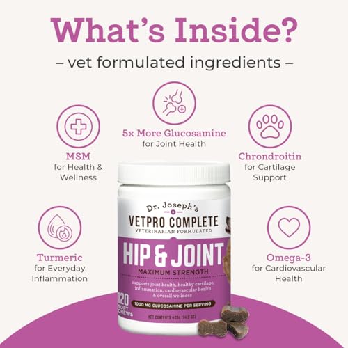 VETERINARIAN RECOMMENDED – Formulated by Dr. Joseph, a veterinarian with over 30 years of experience relieving his patients from painful arthritis, stiff joints, joint damage, and hip dysplasia. Our glucosamine chondroitin for dogs is a unique dog joint supplement that benefits the heart, skin, coat, digestive tract, and promotes liver health. We provide joint care for dogs of all sizes and breeds.