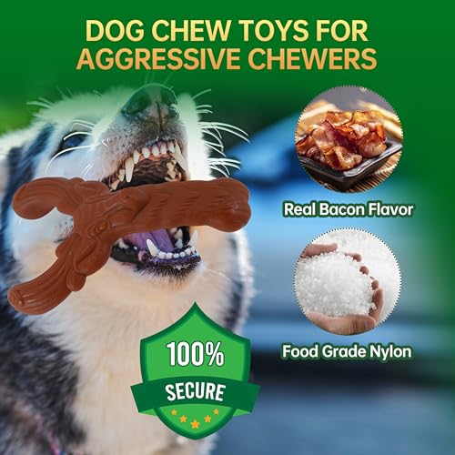 Indestructible Dog Chew Toys for Aggressive Chewers, Tough and Durable Dog Toys for Large Medium Small Dogs, Real Bacon Flavor, Best Dog Toys to Keep Them Busy