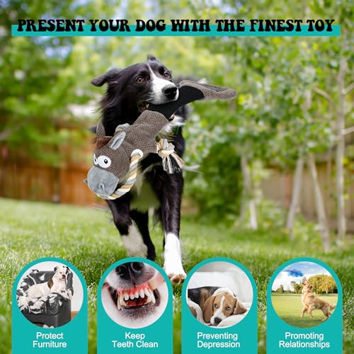 IOKHEIRA Dog Squeaky Toy for Large Dog, Interactive Tug of War Dog Plush Toys with Cotton Material & Crinkle Paper Tough Durable Dog Toys for Puppy Breed (Gray, Donkey)