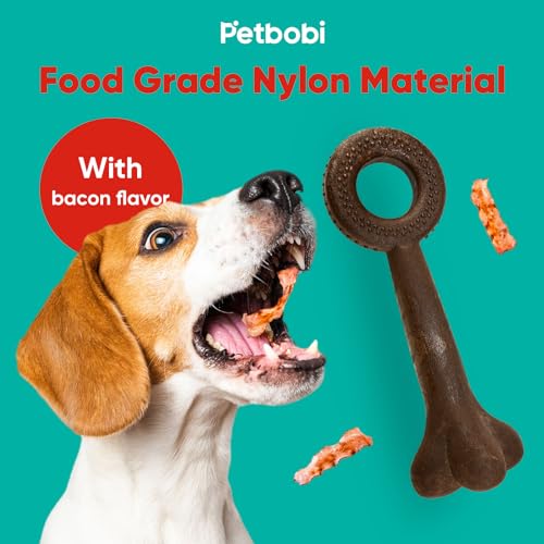 Petbobi Chewy Dog Toy, Tough Chew Toys for Dogs, Indestructible Dog Chew Bones for Large Dogs, Non-Toxic Dog Chew Toy for Puppy Teething, Bacon Flavor