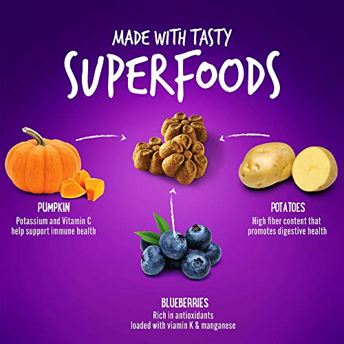 IRRESISTABLE TASTE – Everything’s better with Pumpkin! Real Pumpkin and Blueberry combine for a taste that will drive your dog wild