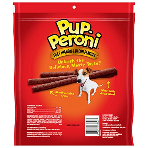 Contains one (1) 22.5-ounce bag of Pup-Peroni Filet Mignon & Bacon Flavor dog treats